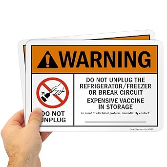 PDF Do Not Adjust Refrigerator Controls (English) - Indiana Warning Labels. Vaccine Storage and Handling Toolkit—2018 72. es. Do Not Adjust Freezer Controls (English) Do Not Adjust Freezer Controls (Spanish) ... WARNING' EXPENSIVE VACCINE IN STORAGE DO NOT STOP POWER TO CIRCUIT BREAKER IN THE EVENT OF ELECTRICAL PROBLEM, IMMEDIATELY CONTACT AT . INO desconecte